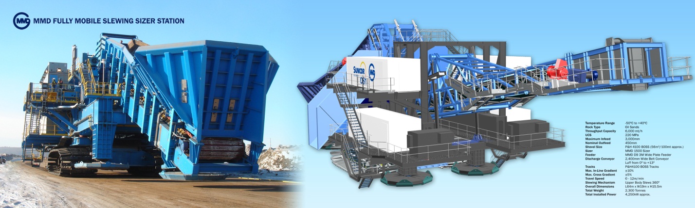 MMD公司從1991年起開(kāi)始進(jìn)行移動(dòng)式破碎站的設(shè)計(jì),先后設(shè)計(jì)從輪胎式移動(dòng)破碎站、履帶式移動(dòng)破碎站和可回轉(zhuǎn)的全移動(dòng)破碎站,最近MMD公司又開(kāi)發(fā)出了全新的低矮型移動(dòng)破碎站。