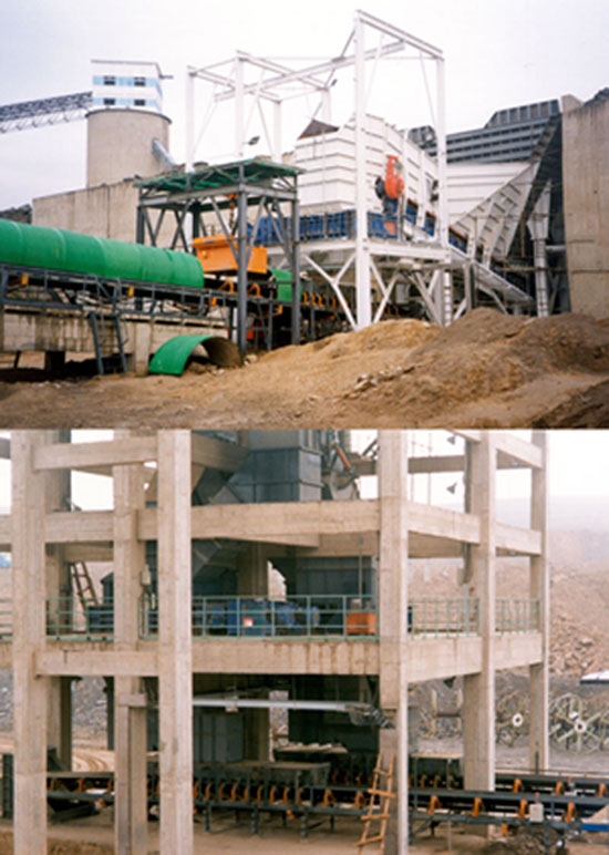 1998年安家?guī)X采購(gòu)2套MMD1000系列破碎機(jī)作為初破,小時(shí)能力2500噸.二破為MMD625系列共4臺(tái)。
