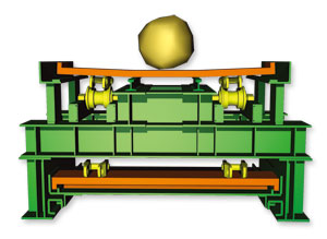 消除沖擊載荷能量尤其重要,沖擊載荷先由支撐板吸收并引起鏈板彈性變形,然后沖擊載荷通過鏈板傳遞到主框架結(jié)構(gòu),并通過主框架結(jié)構(gòu)吸收沖擊載荷。