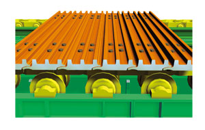 為匹配MMD篩分破碎機(jī)巨大的生產(chǎn)能力,MMD開發(fā)設(shè)計(jì)了重型板式給料機(jī)與篩分破碎機(jī)配套使用傳送物料。