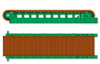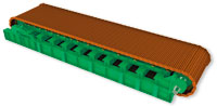 固定在鏈條上的托板為特殊截面設(shè)計(jì)的軋制型鋼,托板與托板之間搭接避免物料從托板之間漏下。托板采用防磨損的沉頭螺栓與鏈條固定。