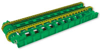 MMD重型板式給料機(jī)的主體結(jié)構(gòu)是重型鏈條和托輪直接安裝在給料機(jī)主框架上。鏈條和鏈輪的型號根據(jù)所受載荷和不同工礦而確定。鏈條和托輪采用卡特彼勒公司生產(chǎn)制造的D4,D7,D9,D11牽引鏈。因此,MMD重型板式給料機(jī)也分為D4,D7,D9,D11四種型號。